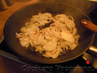 Ahora, en una sartén, dora los ajos y pocha la cebolla hasta que quede dorada.